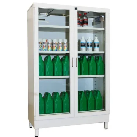 Vid försäljning av brandfarliga produkter krävs ett brandavskiljande skåp i butiken. Här kan brandfarliga varor i plastflaskor och aerosolburkar förvaras säkert, samtidigt som de exponeras genom den glasförsedda dörren. Våra brandavskiljande skåp är Klass 1-godkända, certifierade och P-märkta av SP, Sveriges Provnings- och forskningsinstitut.