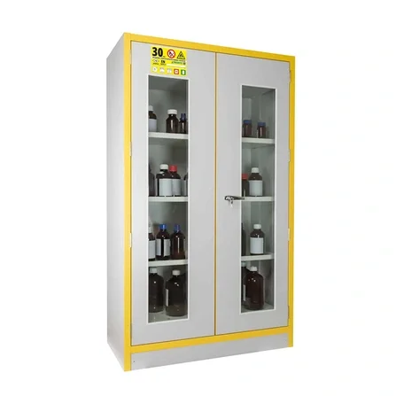 Kemikalieskåp JiWa F30 med glasdörrar, brandskydd i 30 min höjd 1980 mm, välj mellan 2 bredder från 31 980 SEK