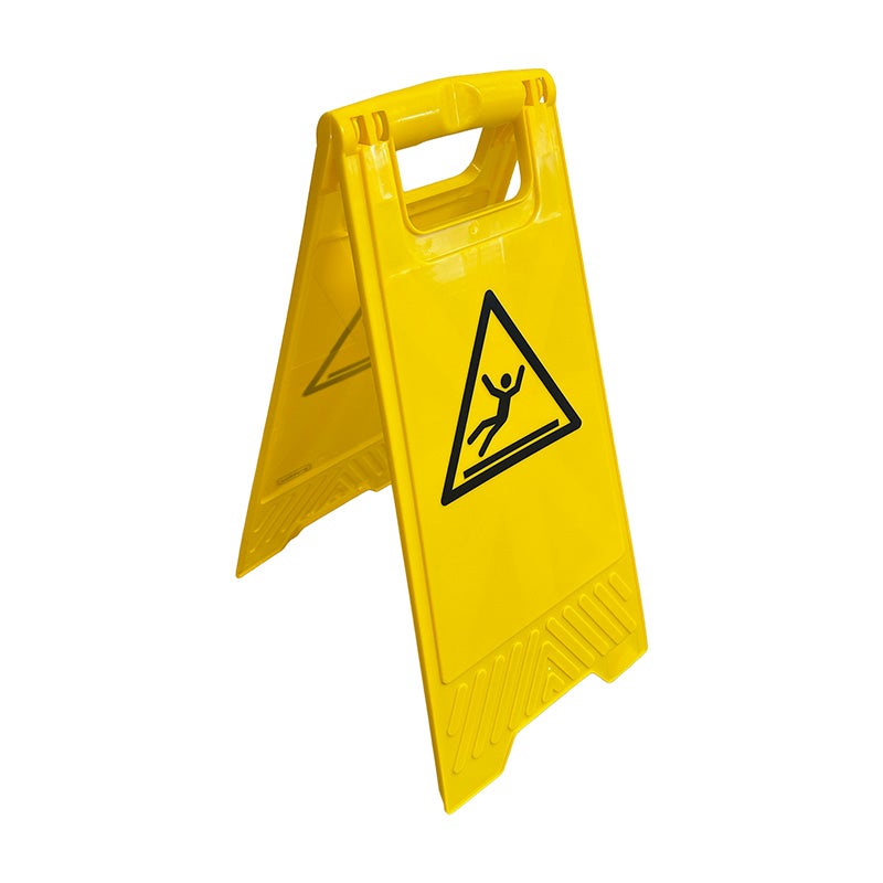 Praktisk och tydlig varningsskylt, särskilt utformad för att snabbt kunna ställas upp vid tillfälliga olyckor som t.ex. involverar spill eller halkrisk. Perfekt för att öka säkerheten i miljöer som butiker, lager, skolor, kontor eller på byggarbetsplatser.